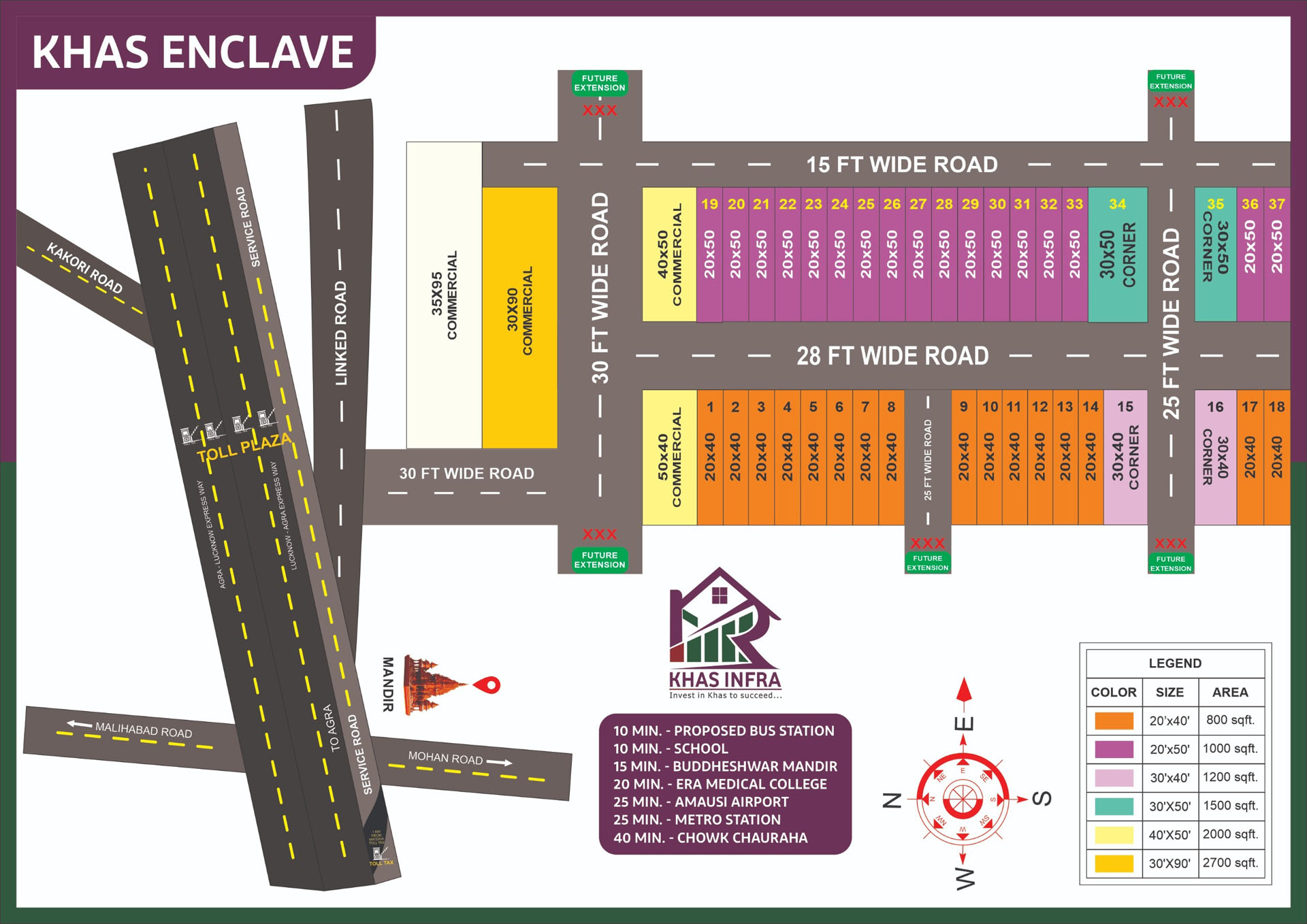 Khas Enclave is a plotted development project near the Agra-Lucknow Expressway and Lucknow Outer Ring Road, it is a government-approved project close to educational institutions and the proposed IT City.The area is a developing hotspot with projects offering plots and apartments, driven by its strategic location and connectivity to amenities.